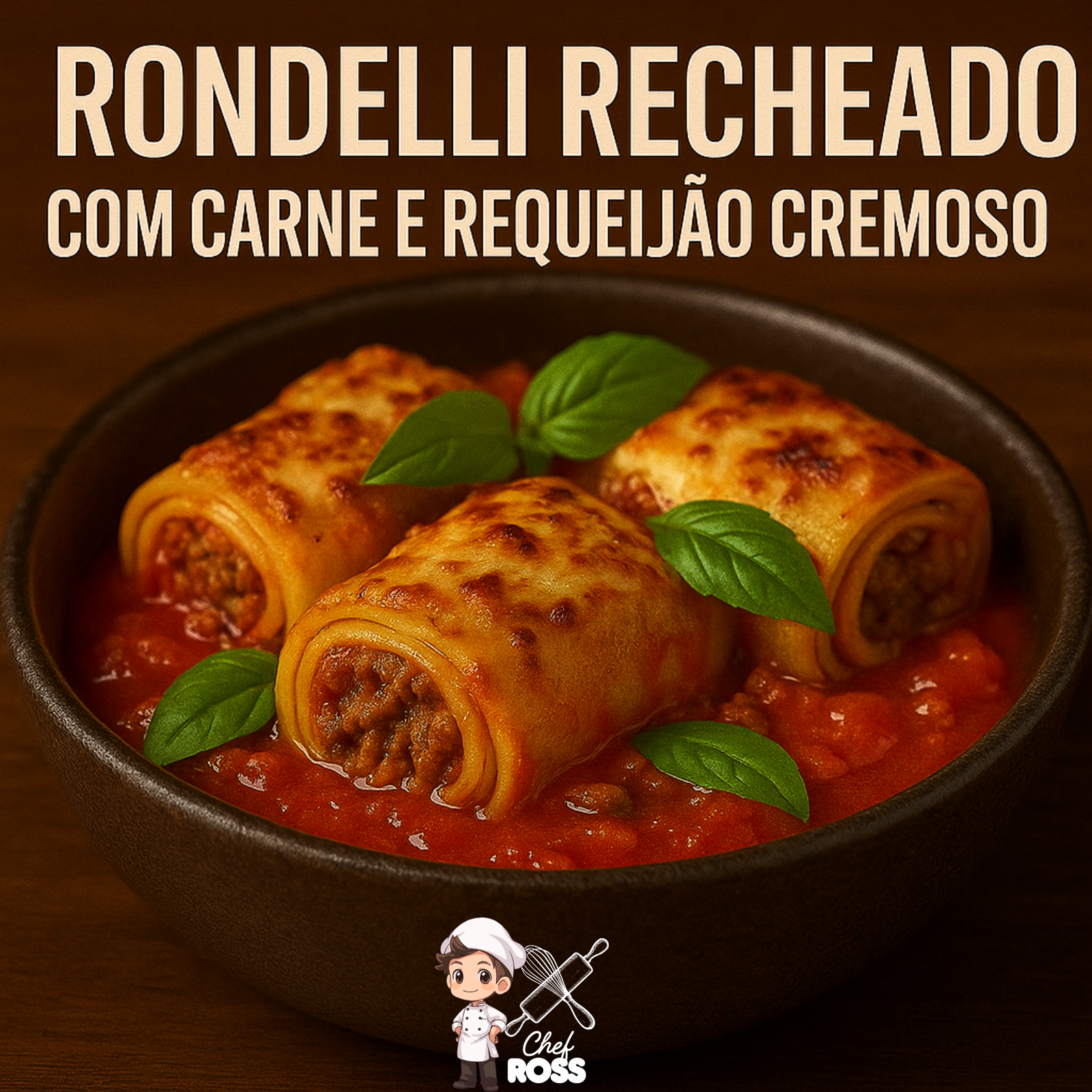 O rondelli é uma massa enrolada que remete à sofisticação da culinária italiana, sendo uma escolha perfeita para ocasiões especiais