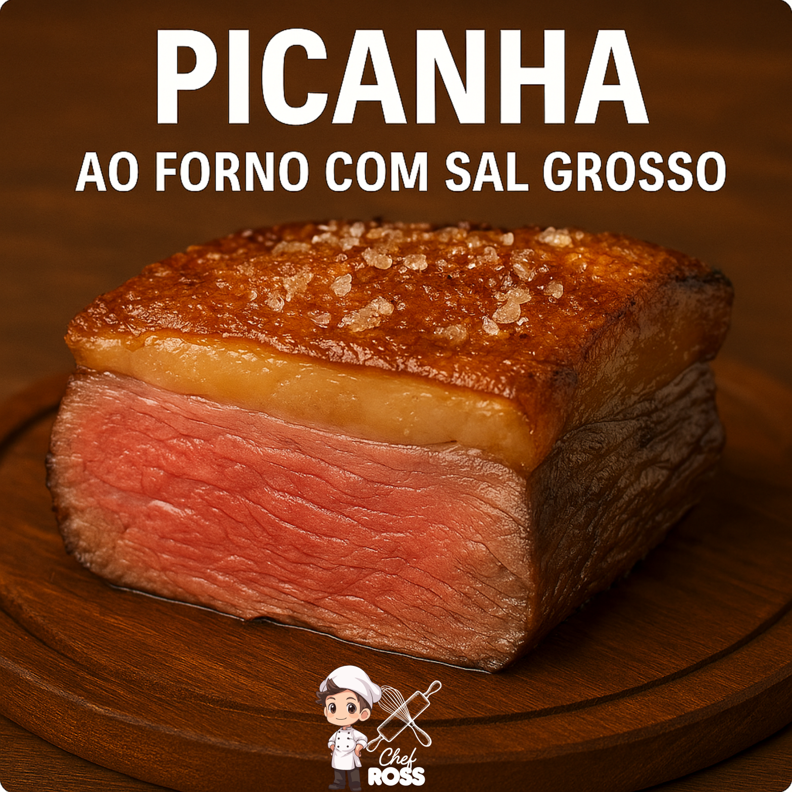 Essa é a escolha perfeita para quem quer servir uma carne nobre sem precisar sair de casa ou usar grelha. O sal grosso realça o sabor natural da picanha, mantendo sua suculência e formando uma leve crosta que encanta o paladar. É a prova de que, com poucos ingredientes e uma boa técnica, dá para criar um prato memorável.
